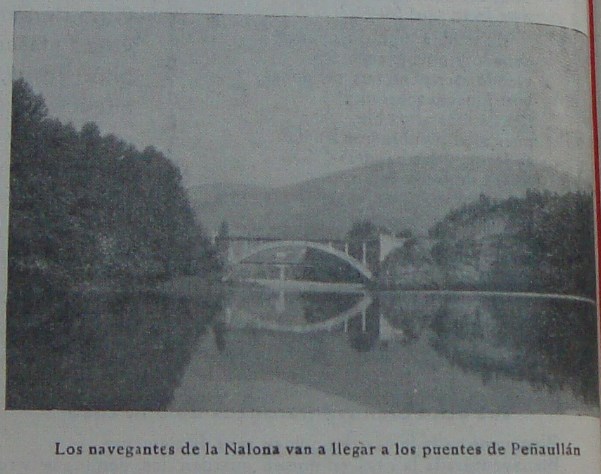 De los remos y el fitón van encargados dos bravos lobos de río: Arturo Aguirre Martínez y Félix Suárez Cuervo, ambos de Peñaullán conocedores metro a metro del cauce de esta parte del Nalón, D. Manuel Martínez Bernardo que a su profesión de veterinario une una gran afición a la pesca, se nos descubre como un fotógrafo consumado. Armado al hombro de su Retina y una Silette, por si acaso, vigila atentamente las ocasiones de fotografiar todo lo que pueda ofrecer algún interés.