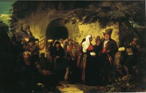 Dionisio Fierros, «Salida de misa en una aldea de Santiago», 1862.